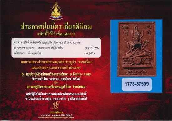 พระพรหม 7 รอบ ปี 40 หลวงปู่ทิม วัดพระขาว เนื้อชานหมาก โรยผงตะไบ สวยเเชมป์ พร้อมใบประกาศครับ