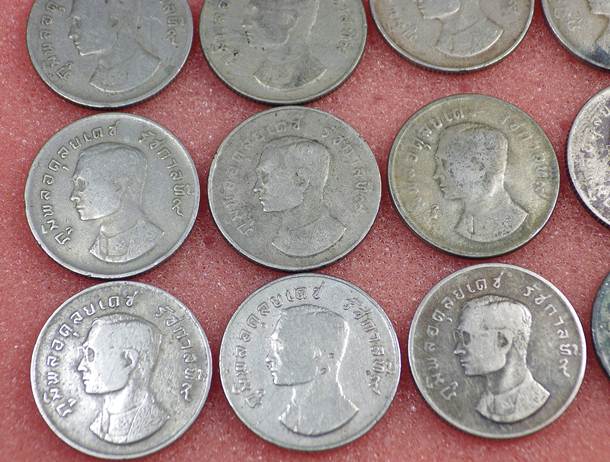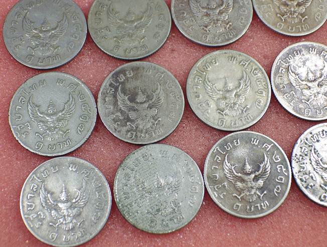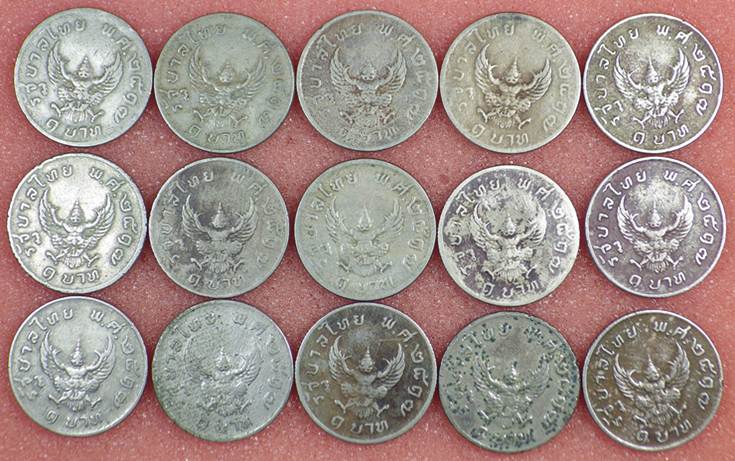 เหรียญ 1 บาท รัชกาลที่9 หลังครุฑ ครุฑปี 17 สภาพหมุนเวียนผ่าน ทั้งหมดจำนวน 15 เหรียญ เคาะเเรกแดง100.-ครับ |