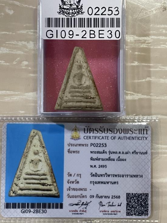 (เคาะแดง1700) +บัตรสมาคม สมเด็จเผ่า พิมพ์สามเหลี่ยม วัดอินทร์