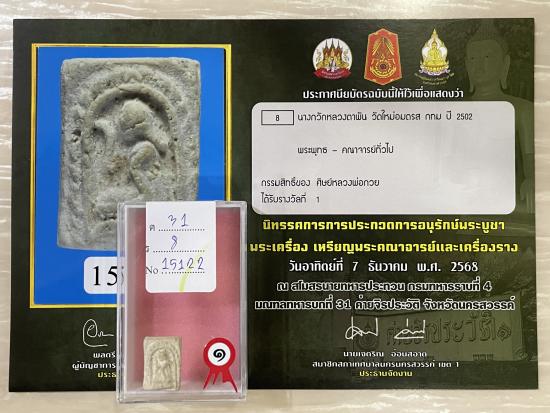 สร้างยุคต้น เนื้อจัด แก่มวลสาร ปี 2502 สมบูรณ์ผิวเดิมๆ ไม่หักไม่ซ่อม รับประกันพระแท้ ดูง่าย พร้อมใบประกาศจากสมาคม