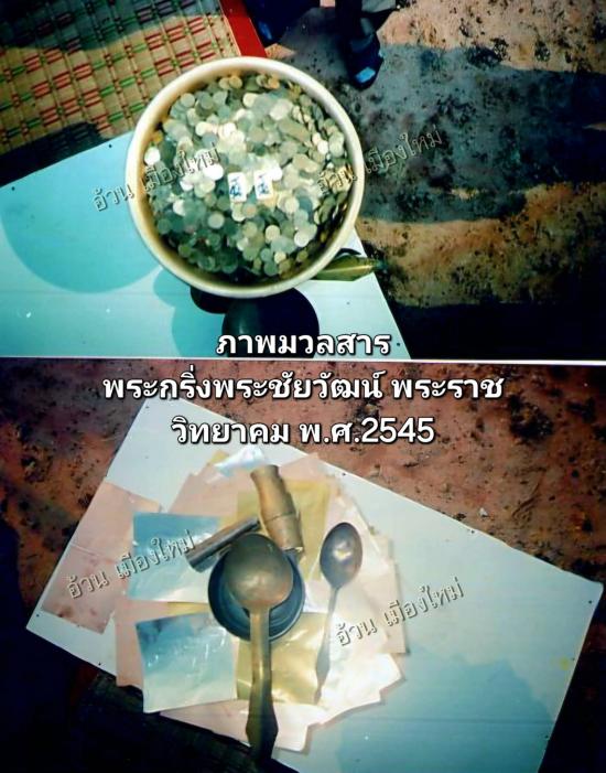 | พระชัยวัฒน์ยอดธงพระราชวิทยาคมเถระ ( เนื้อสตางค์ ตอกโค้ดเจดีย์ , มีเดือย 1 องค์ / ไม่มีเดือย 1 องค์ ) พ.ศ.2545 ( จัดสร้างแบบละ 1000 องค์ ) |