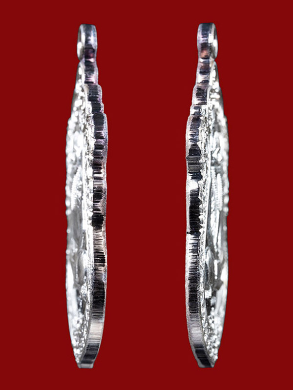 เนื้อเงิน ผิวกระจก ขนาด 2.7 ซ.ม. X 4.2 ซ.ม. สภาพเหรียญศิลป์สวย สมบูรณ์ !!