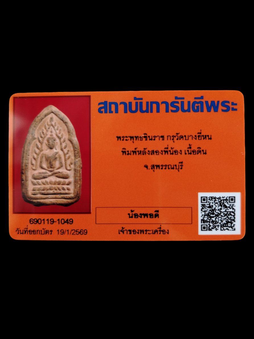 พระชินราชกรุบางยี่หน พิมพ์หลังสองพี่น้อง มาพร้อมใบรับรอง