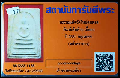 สมเด็จบางขุนพรหม ปี2531 พิมพ์เส้นด้ายตัดเครื่อง