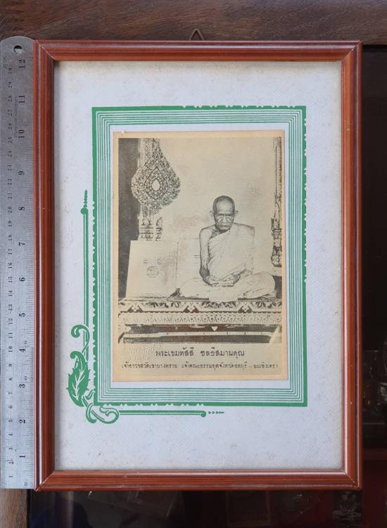 รูปขนาด 5"×7" พระเขมทัสสี วัดเขาบางทราย จ.ชลบุรี พร้อมกรอบไม้เก่า...