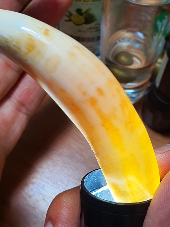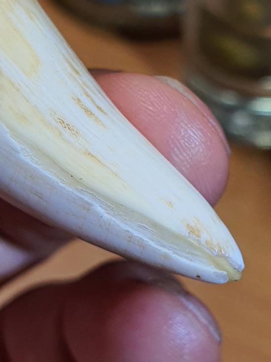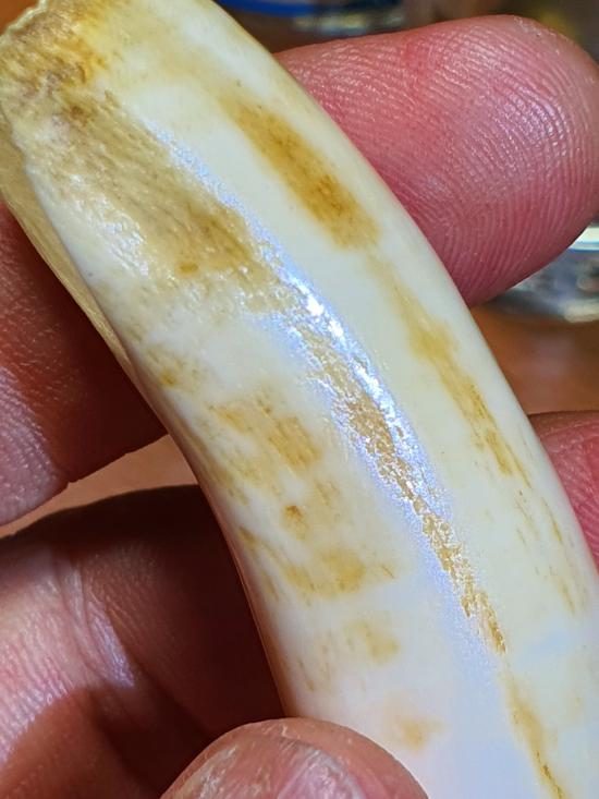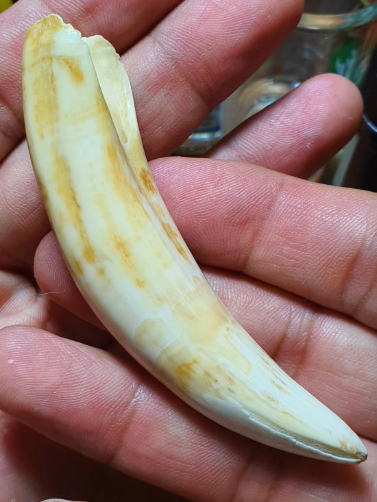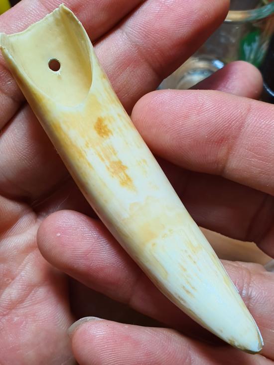 เขี้ยวกลวงเก่าไม่ทราบที่ ไม่ทราบชนิดเครื่องรางเก่าโบราณ เจาะรูใหม่ ขนาด8.2 ซม