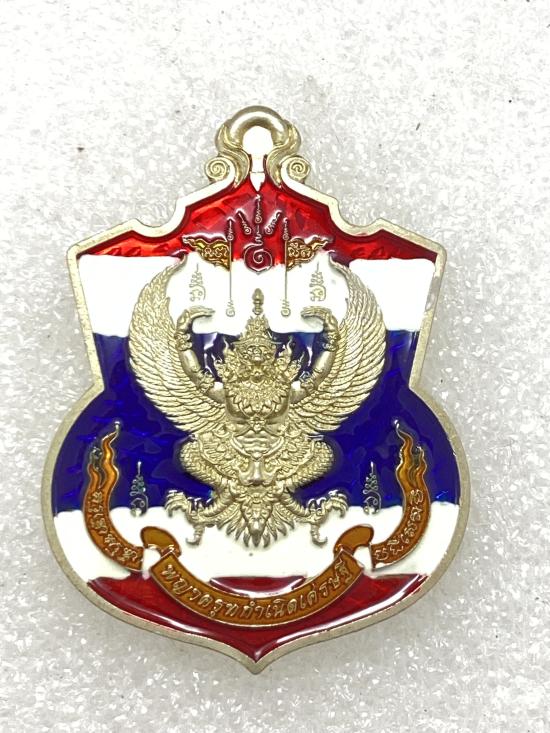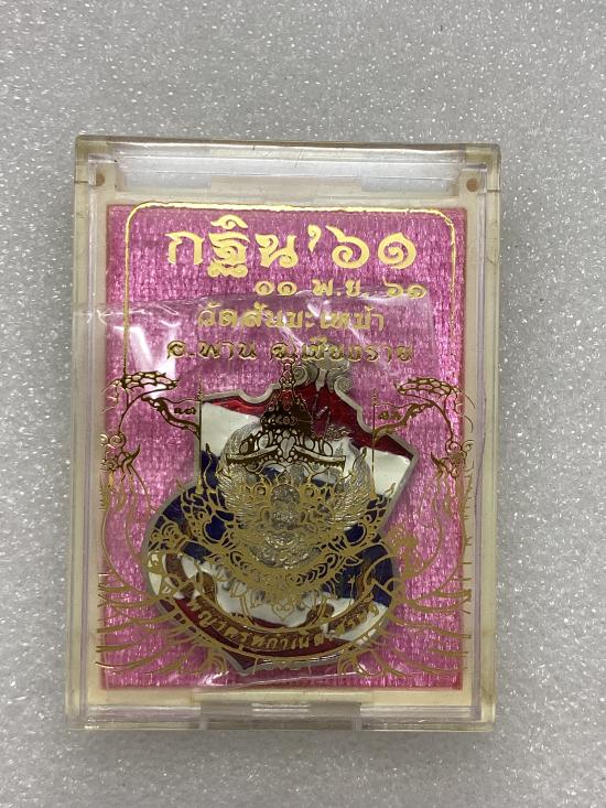 เหรียญพญาครุฑ ด้านหลังท้าวเวสสุวรรณ กฐินสามัคคีปี61 ครูบาวิรุต วัดสันมะเหม้า เนื้ออัลปาก้า ลงยาลายธงชาติ กล่องเดิม |