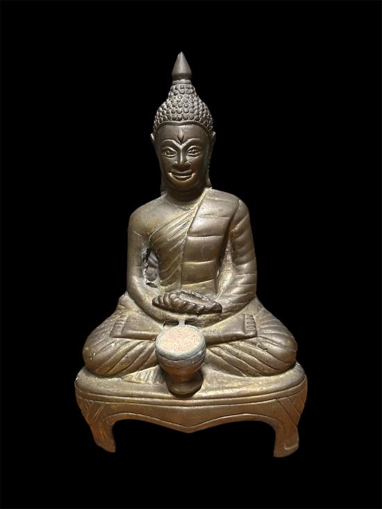 พระบูชารัชกาล เนื้อเหลือง ปางสมาธิถือหอยสังข์ หน้าตัก 4นิ้ว ก้นดินไทย
