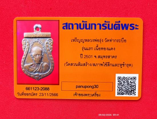 เคาะเดียว ไม่ต้อง วัดใจ เหรียญ หลวงพ่อรุ่ง ออกวัด สวนส้ม ปี 2501 พร้อมบัตร