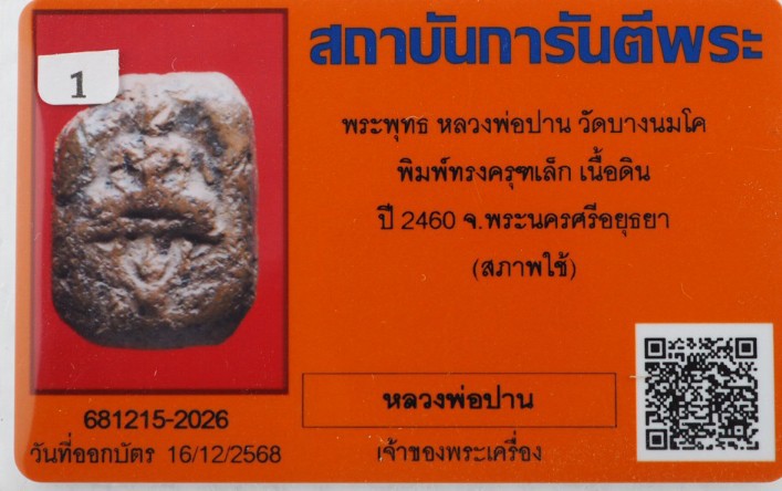 หลวงพ่อปาน วัดบางนมโค พิมพ์ครุฑเล็ก บัตรG+ บัตรสมาคม ใช้งานผมอุดยังเต็ม