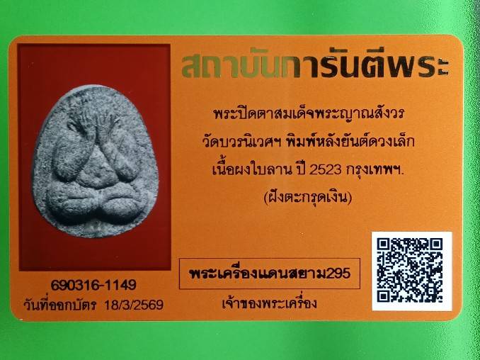 ภาพในบัตรรับรองพระแท้จากสถาบันการันตีพระ
