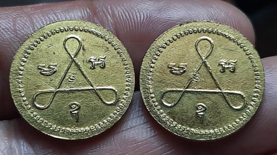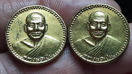 เหรียญหลังยันต์ใบพัด หลวงพ่อเปิ่น วัดกลางบางพระ จ.นครปฐม ตอกโค๊ต เนื้อกะไหล่ทอง (จำนวน2เหรียญ)