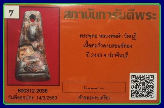 หล่อพระพุทธเนื้อตะกั่ว หลวงพ่อดำ วัดกุฎี ยุคต้น ปี 2443+++บัตรgpra