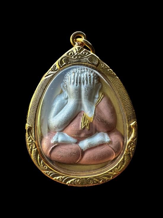 พระปิดตา 7 รอบ 84 พรรษา เนื้อโลหะชุบสามกษัตริย์ สมเด็จพระาณสังวร สมเด็จพระสังฆราช วัดบวรนิเวศวิหาร พร้อมเลี่ยมยกซุ้มสิงห์ชุบทอง+กล่องเดิม