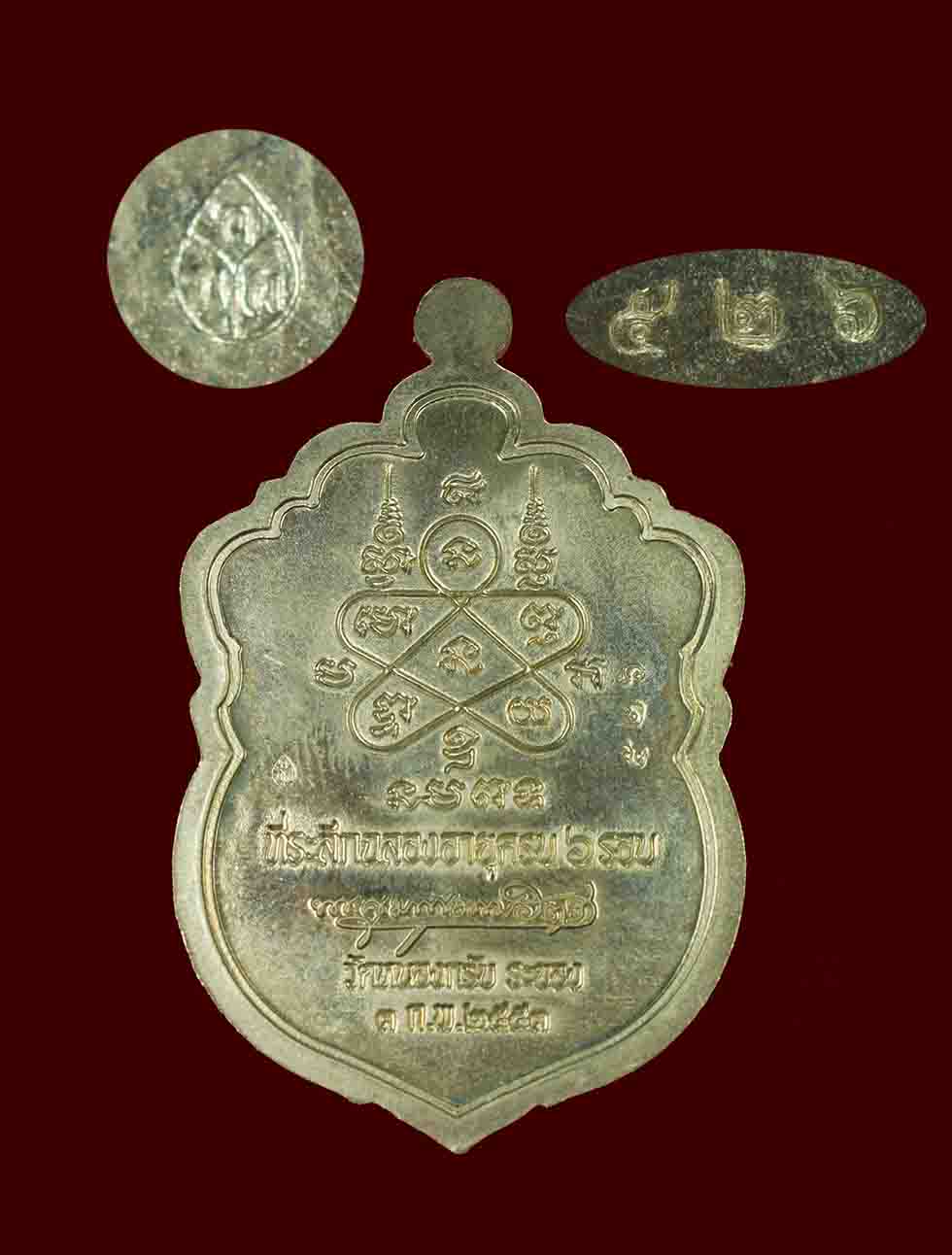 เหรียญเสมาหัวเสือ 6 รอบ ปี 2553 เนื้ออัลปก้า ลงยา 2 สี สร้าง 2772 เหรียญ หมายเลข **526** หลวงพ่อสาคร วัดหนองกรับ ระยอง ( สภาพสวย ) ขนาดความสูงรวมหูเหรียญ 4.5 ซม. กว้าง 3 ซม. ) ไม่มีกล่อง |