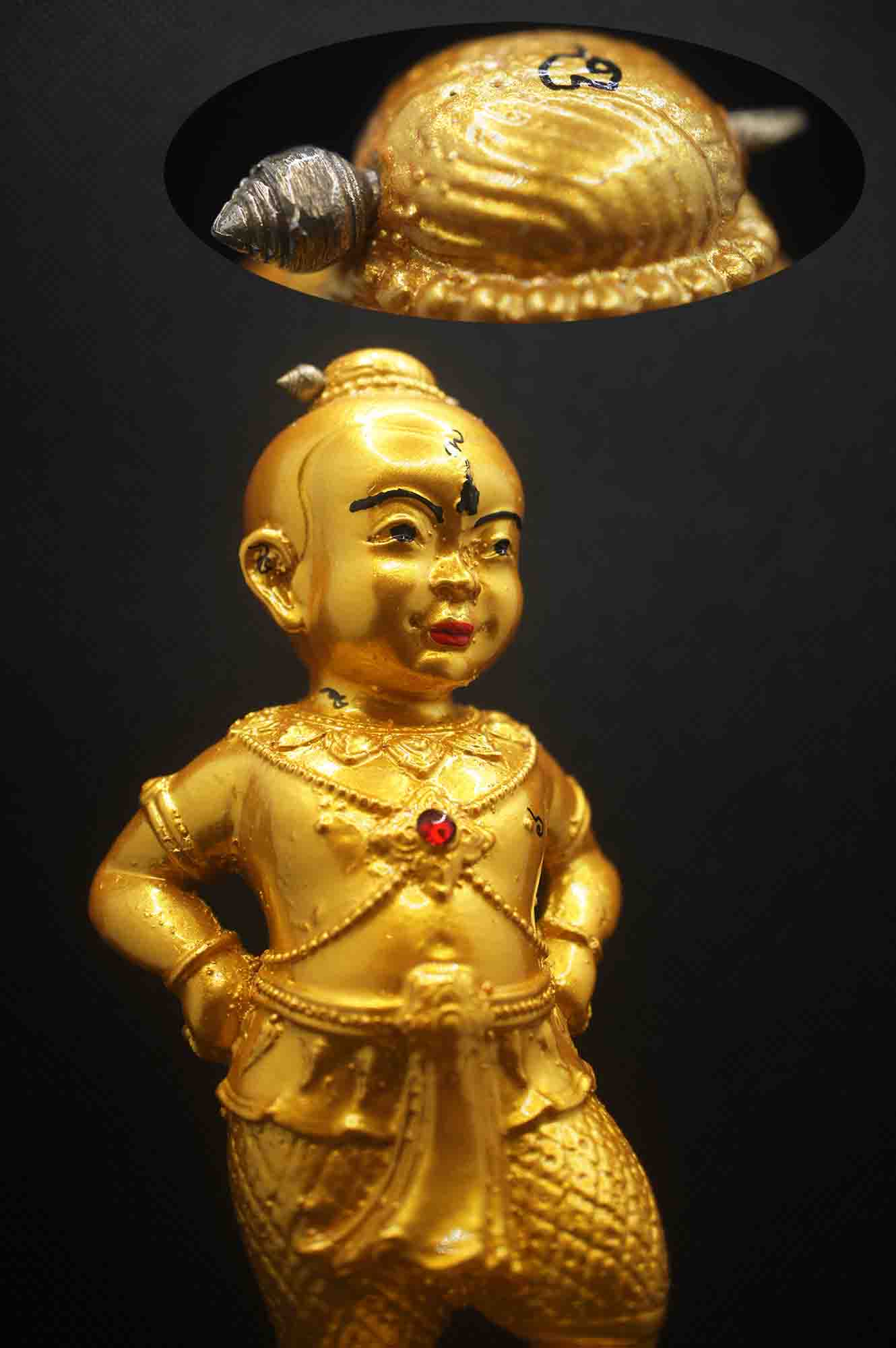กุมารทอง จินดามณี รับทรัพย์ ลงทอง ขนาดบูชา ( พิเศษ องค์นี้ฝังพลอย ) เนื้อเรซิ่น หลวงพ่อสาคร วัดหนองกรับ ปี 2569 ( ปิ่นเงินแท้ ) ฝังพลอยสีแดง ทาทอง เพนท์สี ฝังลูกอม มวลสาร ตระกรุตทองแดง จารมือทั้งตัว หมายเลข ***596*** พิธีปลุกเสก ณ โบสถ์ วัดหนองกรับ ระยอง ปลุกเสก โดย เกจิคณาจารย์ สายหลวงพ่อสาคร วัดหนองกรับ จำนวน 11 รูป สร้าง 999 ตน ( ขนาดความสูง 6.5 นิ้ว กว้างจากฐาน 2.7 นิ้ว )