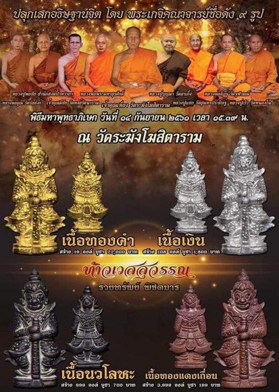 ปลุกเสกพิธีใหญ่ ณ วิหารสมเด็จพระพุฒาจารย์โต พรหมรังสี วัดระฆังโษสิตาราม ใน วันที่ 14 กันยายน 2561 สูง 2.3 เซนติเมตรเถื่อน พระเกจิดัง 9 รูป ร่วมอธิฐานจิต ปลุกเสก