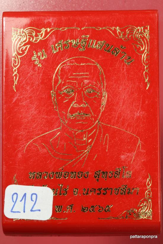 เหรียญหลวงพ่อทอง รุ่นเศรษฐีแสนล้าน ปี 2565 เนื้อทองฝาบาตรไม่ตัดปีก หมายเลข 212