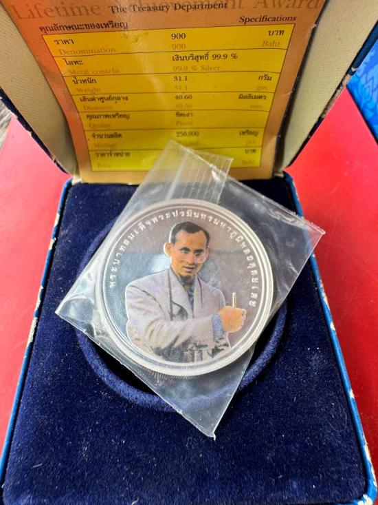 เหรียญเงิน 99.9% หนัก 31.1 กรัมในหลวงรัชกาลที่ 9 ราคาหน้าเหรียญ 900 บาท เนื้อเงินขัดเงา (2)