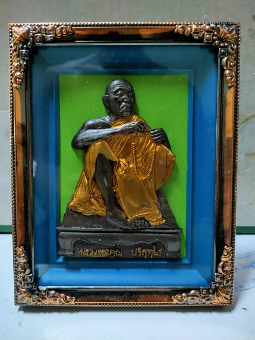 แผ่นกรอบรูปบูชา หลวงพ่อคูณ ปริสุทโธ รุ่น คูณเงินคูณทอง ออกวัดบ้านไร่ ปี 2536 พิมพ์ชักปะคำ เนื้อ ซิลิก้าทาทอง 5x6นิ้ว เคาะเดียวแดง