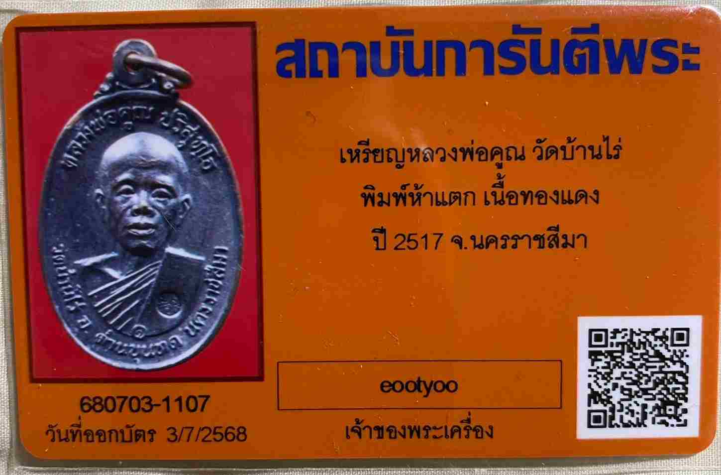 เหรียญหลวงพ่อคูณปึ17บล็อค5เเตกนิยม ปรอทเต็มเทพๆมาพร้อมบัตรรับรอง