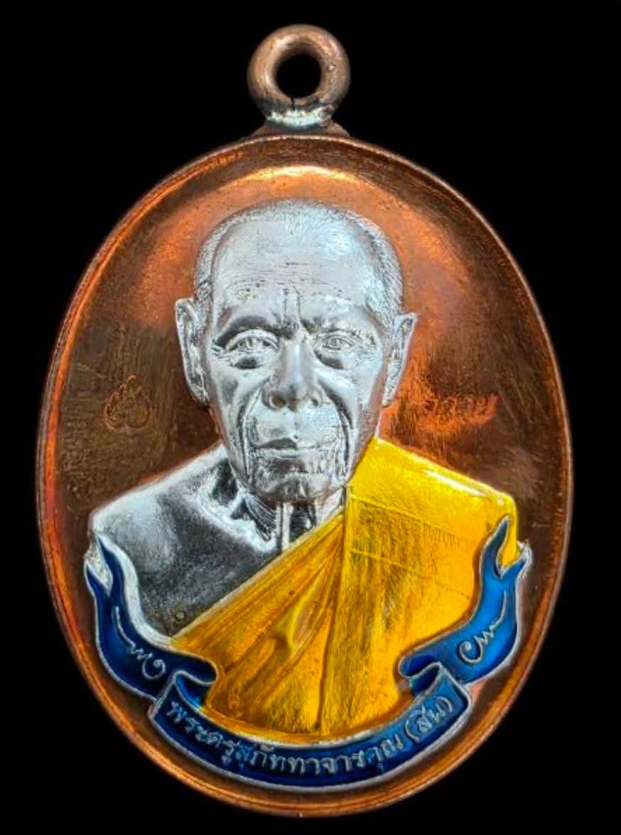 เหรียญห่วงเชื่อมหลวงพ่อสิน เนื้อทองแดงหน้ากากเงิน ลงยาจีวรเหลืองลงยาโบว์