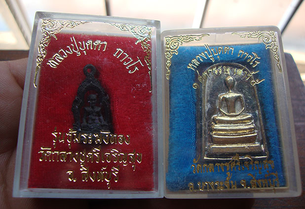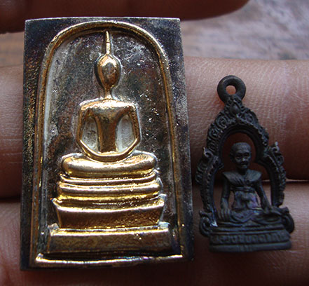 รูปหล่อซุ้มระฆัง + หล่อพระสมเด็จ ( หลวงปู่ ปู่บุดดา วัดกลางชูศรีเจริญเจริญสุข สิงห์บุรี) 2 องค์ กล่องเดิมสวยครับ