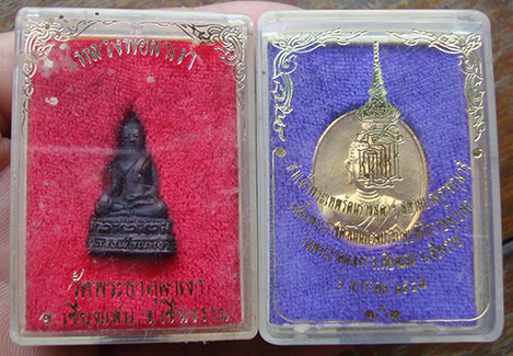พระกริ่ง+เหรียญ (หลวงพ่อผาเงา วัดพระธาตุผาเงา จ.เชียงราย ( 2 องค์ ) กล่องเดิมสวยค่ะ