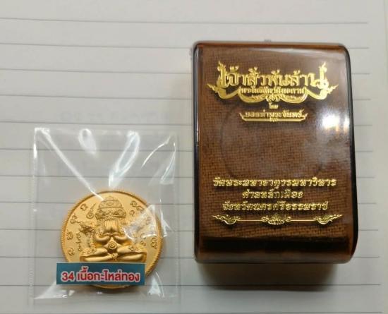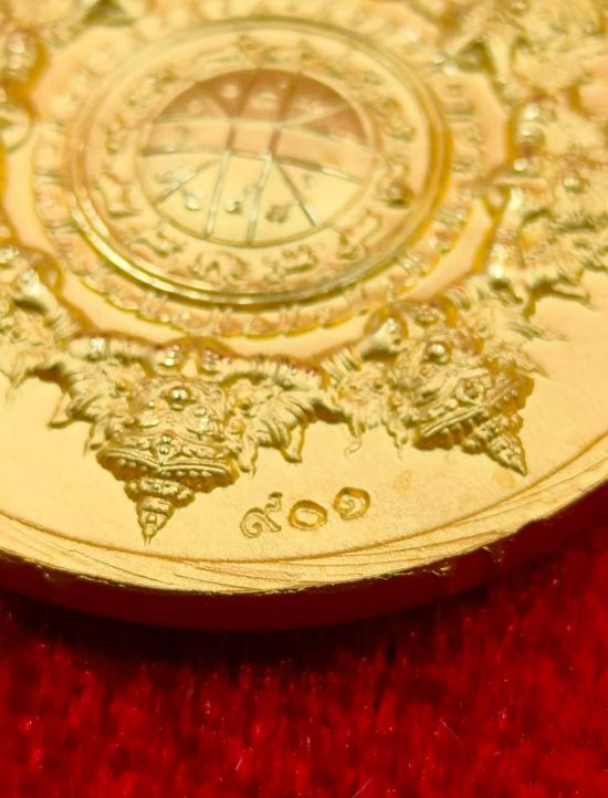 เหรียญปิดตาพังพะกาฬ รุ่นเจ้าสัวพันล้าน(บอย ท่าพระจันทร์) เนื้อกะไหล่ทอง(นิยม) เลขโค๊ต ๙๐๑ พร้อมกล่องเดิม ขนาดเหรียญ 2.8 cm.