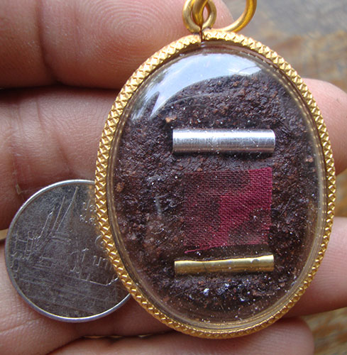 ล็อกเก็ต ครูบาครอง วัดท่ามะเก๋วน จ.ลำปาง หลังตะกรุด 2 ดอก จีวร ปี55 พร้อมเลี่ยม กล่องเดิมค่ะ
