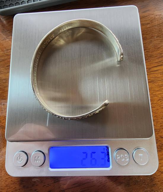 น้ำหนักกำไล 26.3 กรัมครับ เกือบ 2 บาทครับ