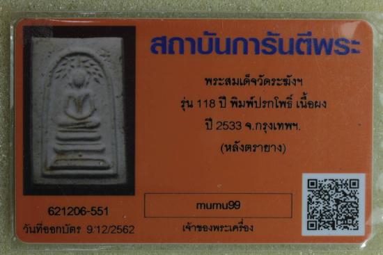 (แดง200)สมเด็จวัดระฆัง อนุสรณ์ 118ปี พ.ศ.2533 พิมพ์ปรกโพธิ์ พร้อมบัตร