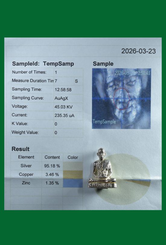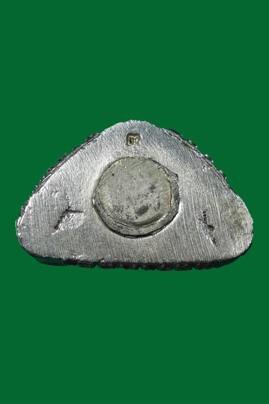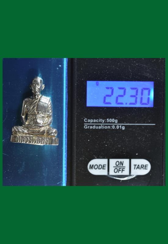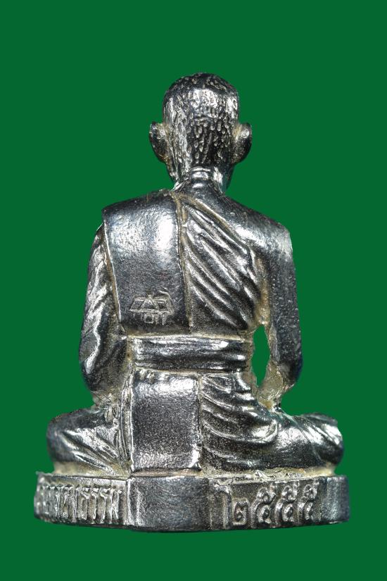 รูปหล่ออุดกริ่ง หลวงพ่อยิ่ง วัดคลองธรรม จ.ชัยนาท สร้างปี 2555 เป็นเนื้อเงิน (น้ำหนักเงิน 22.30 กรัม) ตอกโค้ดรูปศาลาด้านหลัง เลขประจำองค์เบอร์ ๓ พระสภาพสวย ผิวเดิมๆ (มีใบตรวจโลหะเงิน 95.18%)