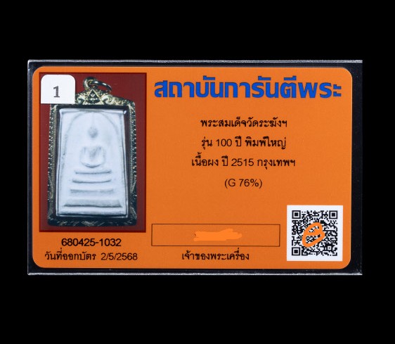 พระสมเด็จวัดระฆัง รุ่น100 ปี พิมพ์ใหญ่ ปี 15 พิมพ์ไข่ปลาเลือน**ไม่มีทองครับ**