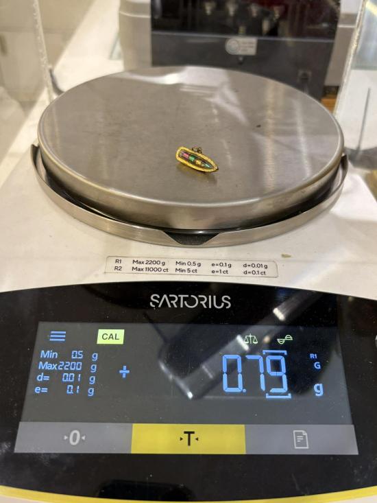 น้ำหนัก 0.79 กรัม กว้าง 2.5 ซม. สูง 1.5 ซม.(รวมห่วงแล้วค่ะ)