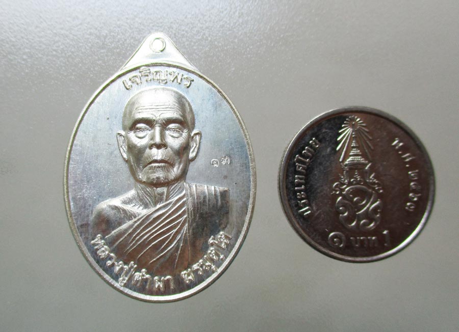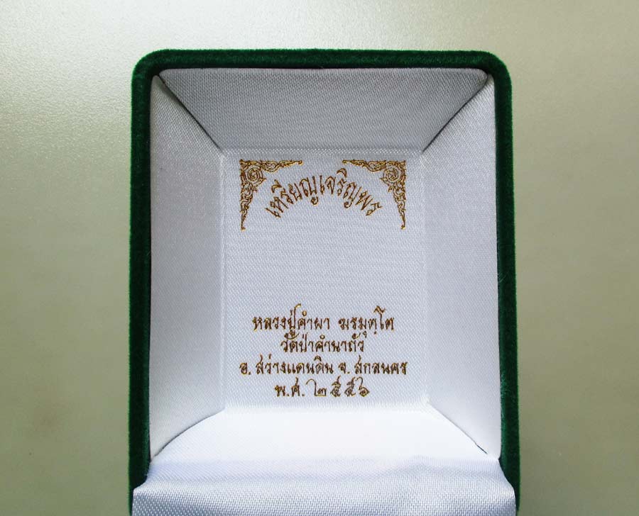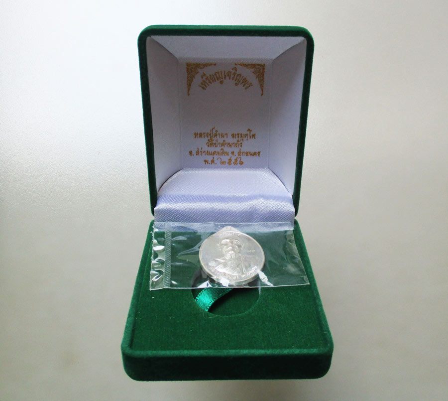เหรียญเจริญพร ไม่มีห่วง หลวงปู่คำผา ฆรมุตฺโต วัดป่าคำนกถัว จ .สกลนคร พ.ศ.2556 เนื้อเงินหลังเรียบ ตอกโค๊ต ตอกเลข นอนกล่องเดิมๆ !! |
