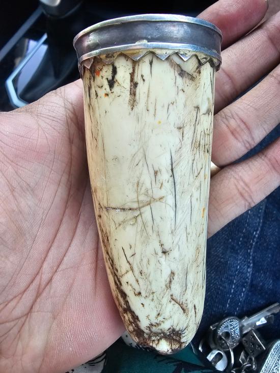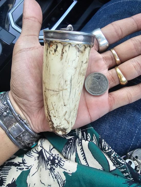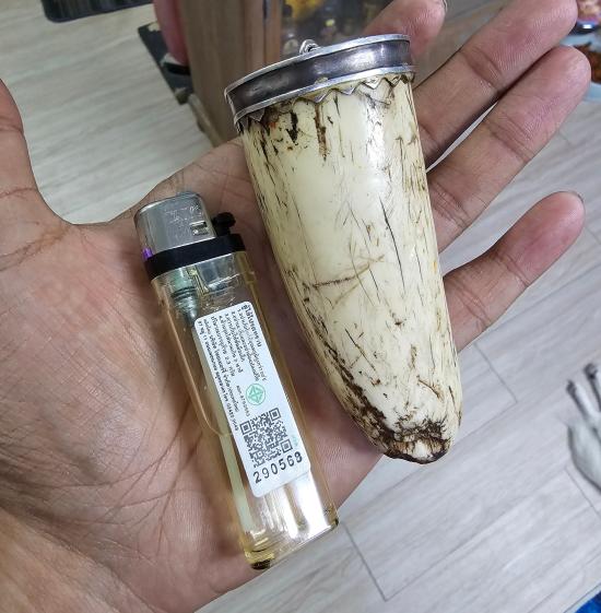 ปลายงาช้างเเท้จับเงินพร้อมใช้ อ้วนใหญ่ตัน ยาว 4 นิ้ว