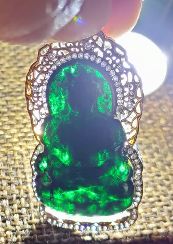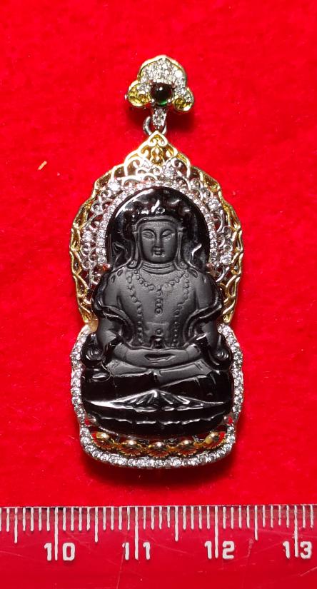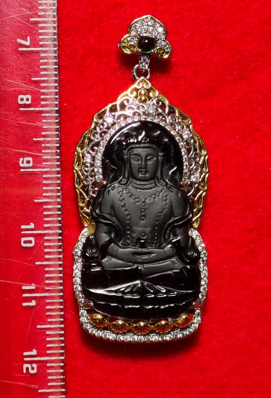จี้หยกพม่าดำส่องเขียว แกะลายเจ้าแม่กวนอิม ตัวเรือนเงินแท้ สินค้าใหม่ค่ะ |