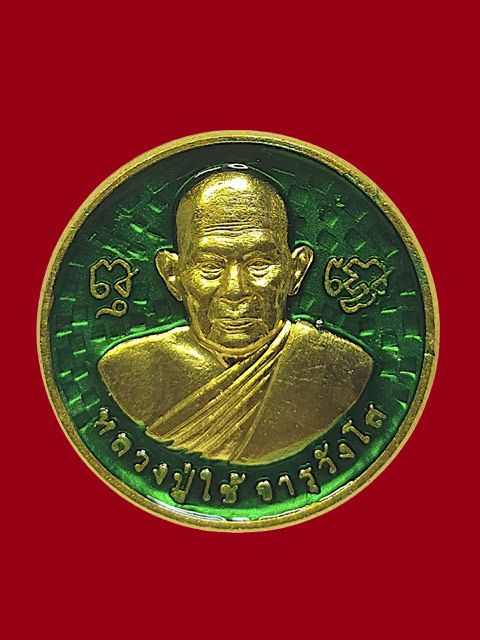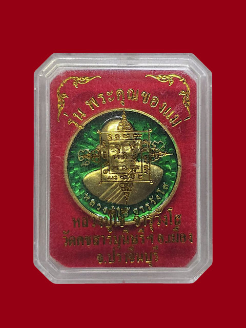 ***เหรียญพระคุณของแม่ เนื้อทองแดงชุบทองลงยาสีเขียว (ขนาดเท่าเหรียญ 2 บาท) หลวงปู่ใช้ จารุวังโส) วัดคชสารมุนีษร๊ ฯ จ.ปราจีนบุรี สร้าง 199 เหรียญ***