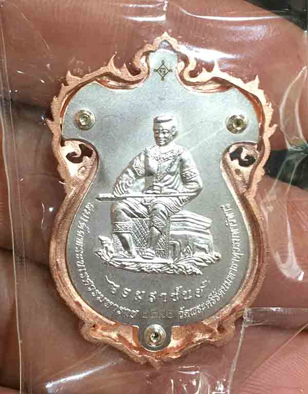 เหรียญหล่อฉลุ 4 มิติ พระพุทธชินราช - สมเด็จพระนเรศวร รุ่นจอมราชันย์ เนื้อเงิน ชุบ 3 กษัตริย์ ปี 2555 สภาพสวย จำนวนจัดสร้าง 5555เหรียญ ราคาจอง 3900บาท พร้อมกล่องเดิมๆ ออกแบบและผลิตโดย บริษัทแพรนด้าจิวเวอร์รี่