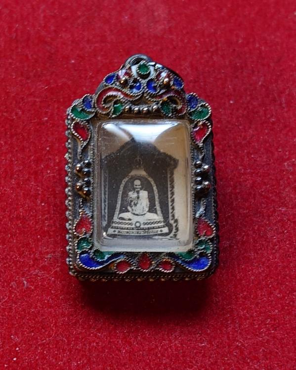 รูปภาพแจกทาน หลวงพ่อพรหม วัดช่องแค หลังยันต์หมึก3แถว กระดาษหนังไก่ คราบปรอทขึ้นชัด พ.ศ.2517 พร้อมเลี่ยมกรอบเงินลงยา รัยประกันแท้ตามกฎครับ