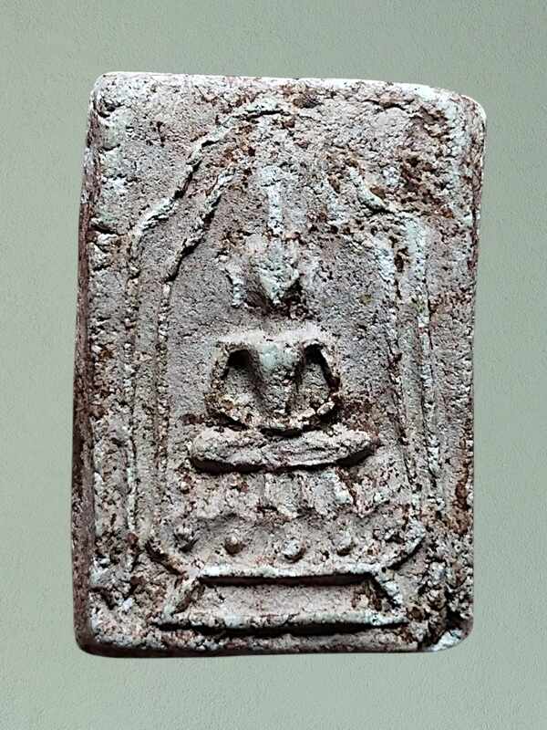องค์นี้เป็นพิมพ์สมเด็จฐานบัวฟันปลา ผ่านการใช้มา มีคราบรักหรือคราบน้ำหมากอยู่เดิม พิมพ์นี้พบน้อย ค่อนข้างหายาก เคาะเดียวครับ
