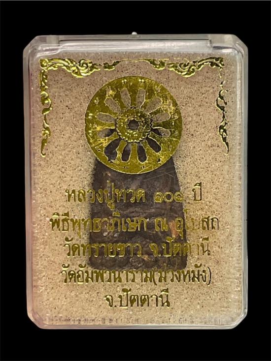 พระหลวงปู่ทวด 101 ปี วัดอัมพวนาราม(ม่วงหมัง) จ.ปัตตานี พิมพ์เตารีด เนื้อว่าน มีโค๊ตกำกับ จัดสร้างโดยพระครูวิสารธรรมปยุต วัดอัมพวนาราม จ.ปัตตานี โดยได้นำวัตถุมงคลรุ่นนี้เข้าร่วมพิธีพุทธาภิเษกที่วัดทรายขาว เพื่อขอบารมีพระอาจารย์นอง และคณาจารย์ที่ได้เคยร่วมพิธีครั้งใหญ่ ในสมัยการสร้างหลวงพ่อทวดปี2500 ที่ยังคงมีชีวิตอยู่ในการร่วมพุทธาภิเษก ณ อุโบสถวัดทรายขาว พิธีพุทธาภิเษก 2 วาระ