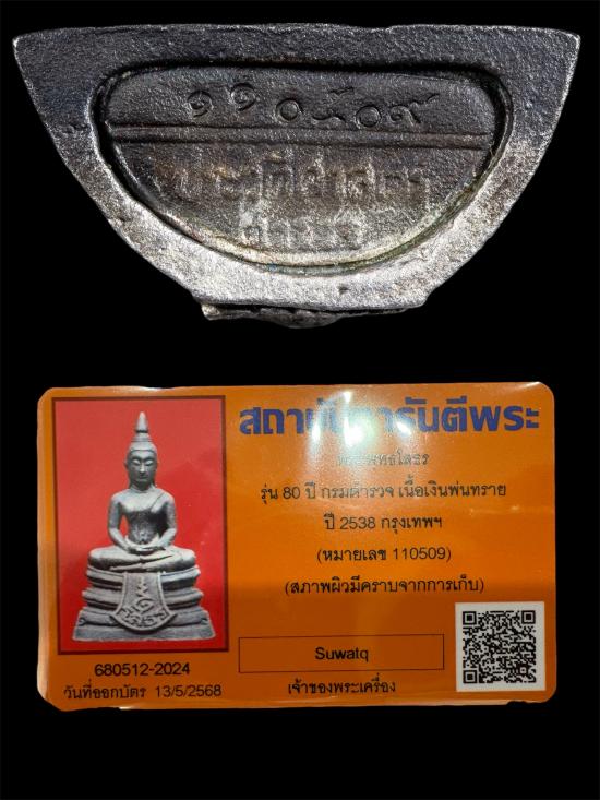 พระพุทธโสธร 80 ปีกรมตำรวจ มีเส้นคอ 3 เส้น เนื้อเงินพ่นทราย ปี 2538[110509] +บัตรG พร้อมบัตร