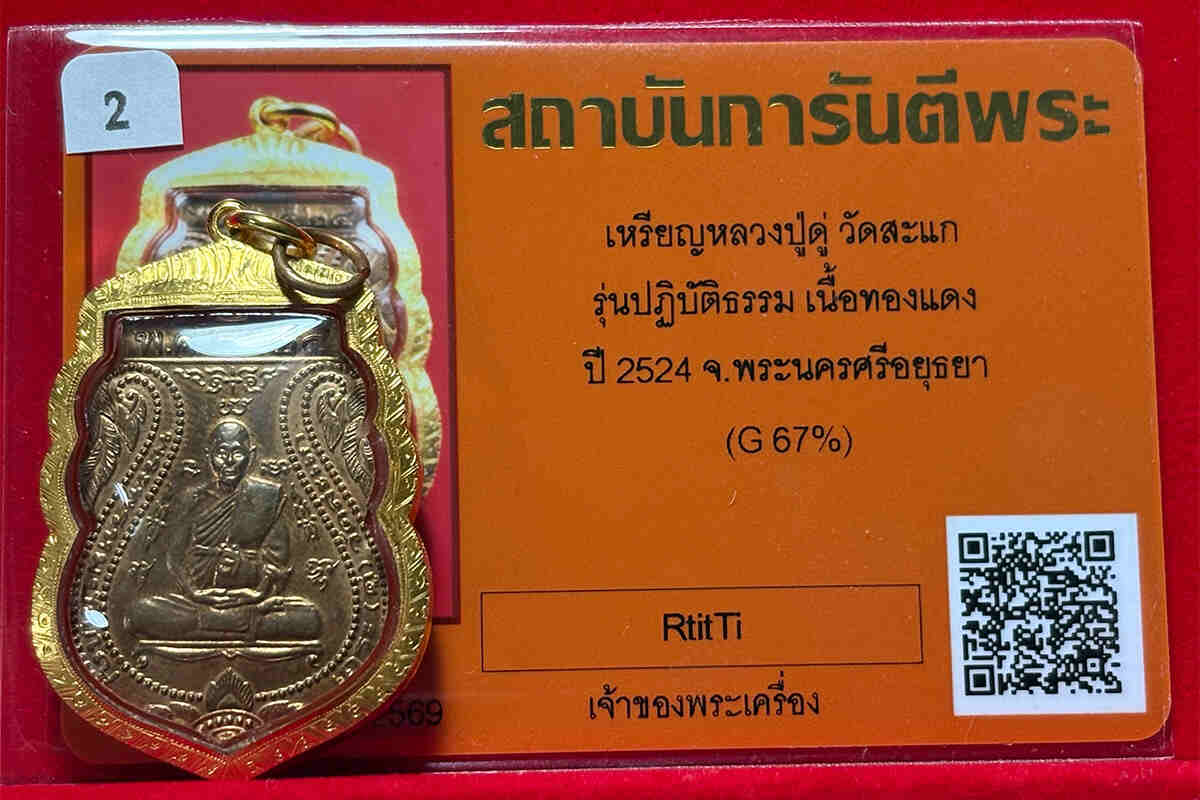 บัตรการันตีพร้อม เลี่ยมทอง ๖๗%