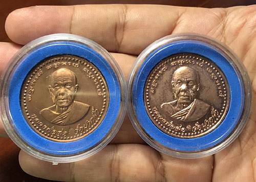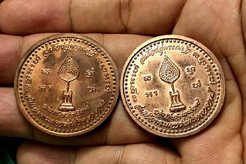 - เหรียญกลมใหญ่ "" เนื้องทองแดง"" หลวงพ่อสด วัดปากน้ำ สมโภชสุพรรณบัฏ สมเด็จพระมหารัชมังคลาจารย์ ปี 2539 สวยๆ พร้อมตลับเดิม 2 เหรียญ !! เคาะเดียว !!