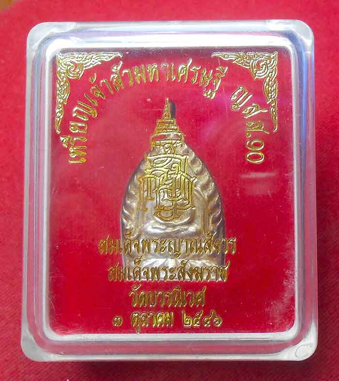 เหรียญเจ้าสัวมหาเศรษฐี ญสส.90 กรรมการ ปั้ม 2 หน้า เนื้อนวะโลหะพรายเงิน สมเด็จพระญาณสังวร สมเด็จพระสังฆราช พ.ศ.2546 พร้อมกล่องเดิม