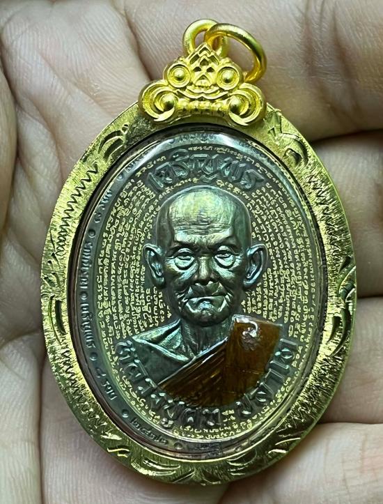 หลวงปู่ฝั้น ปสาโท หลวงพ่อฝั้น วัดศรีถมอรัตน์ เพชรบูรณ์ ท่านเป็นศิษย์ หลวงพ่อเดิม (สามเณรเลี้ยงช้างหลวงพ่อเดิม) หลวงพ่อกวย หลวงพ่อทบ รุ่น รุ่น เจริญพรบน พิเศษด้านหน้าอุดมวลสาร หลังหลวงปู่ทวด |