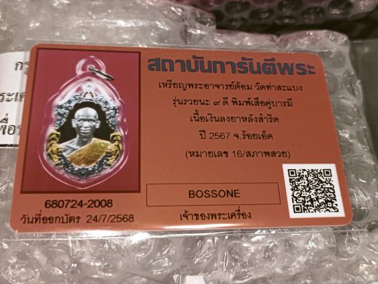เคาะเดียว พระอาจารย์ต้อม วัดท่าสะแบง จ.ร้อยเอ็ด รุ่นรวยนะ9ดี พิมพ์เสือคู่บารมี (รายการชุดลังทองคำ เนื้อเงินลงยาสามสี หลังชนวน ) No.16 พร้อมกล่องเดิม พร้อมใบเซอร์ สภาพสวยกริ๊ป วัดความแรง