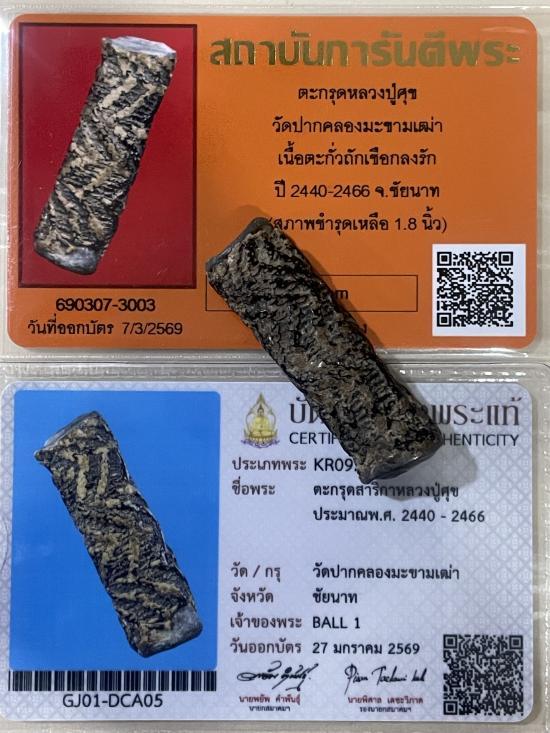 ลายจรเข้ชบฟัน วัดปากคลองมะขามเฒ่า ตะกรุดสาริกาแท้ตามในบัตร ไม่ได้ตัด ยาว1.8 นิ้ว ขนาดเล็กคล้องคอได้ ตัวจริงๆ รักมันๆ สภาพดีมาก ตำนานจารตะกรุดใต้น้ำ สร้างช่วง 2240-2466 รับประกันพระแท้ ดูง่าย สวยสมบูรณ์ไม่หักไม่ซ่อม พร้อมบัตรรับรองสมาคมและบัตรรับรองพระแท้จากสถาบีนการันตีพระ